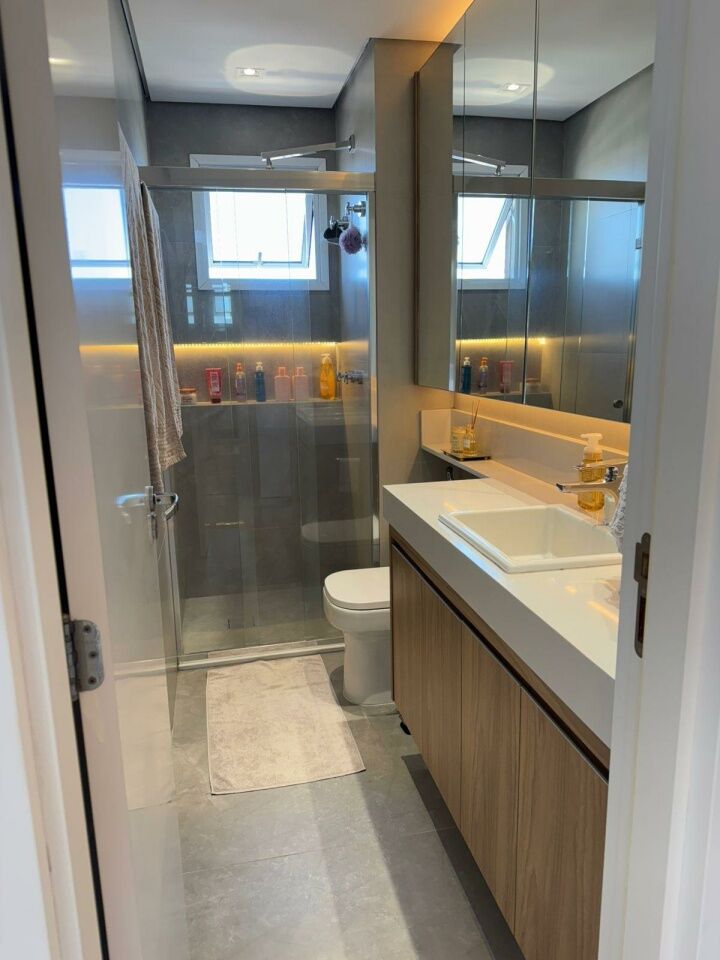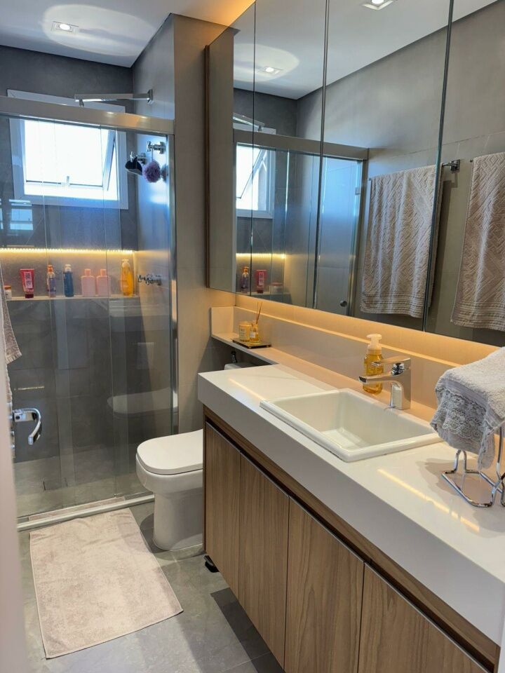 Apartamento cinematográfico na Mooca, o mais bonito do prédio, andar alto, com 2 dormitórios, 1 suíte Master(3o dormitório closet), varanda gourmet integrada à sala, repleto de armários, ar condicionado Q/F, todas torneiras com água aquecida, fogão, forno coifa, churrasqueira a gás, lazer completo, próximo a feira, hospitais e da futura estação do metrô Vila Bertioga.